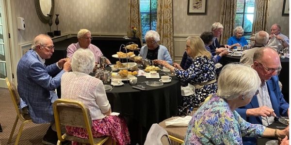 The first Probus Afternoon Tea was held at the Arlington Hotel on 29 April 2025. The weather was beautiful as befits a quintessentially afternoon tea and the venue was a perfect setting for a timeless tradition. On arrival the guests settled down to cups of tea and very tasty finger sandwiches – beef and horseradish, smoked salmon and egg and cress. Beautiful individual cakes of lemon drizzle and chocolate iced sponge graced the tables. The crowning glory was delicious light scones served warm with strawberry jam and clotted cream. A very enjoyable afternoon was spent chatting to other members and some guests. The President, David Gibbs, thanked Beryl Short for arranging the event and the round of applause showed how much this had been appreciated. All too soon the afternoon ended, and we left in the glorious Spring sunshine, happy and replete.